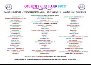 | Dimanche 29 | Bal CD | MULSANNE | Country Girls and Boys | 14H00 | ![]() |