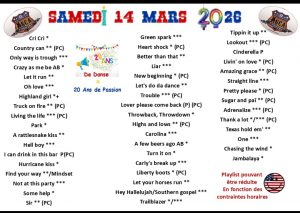 | Dimanche 15 | Bal CD | ST CALAIS | Mustang Dancers | 14H00 | ![]() | ![]() |