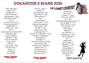 | Dimanche 8 | Bal CD | LE LUART | Le Luart Country | 14H00 | ![]() | ![]() |